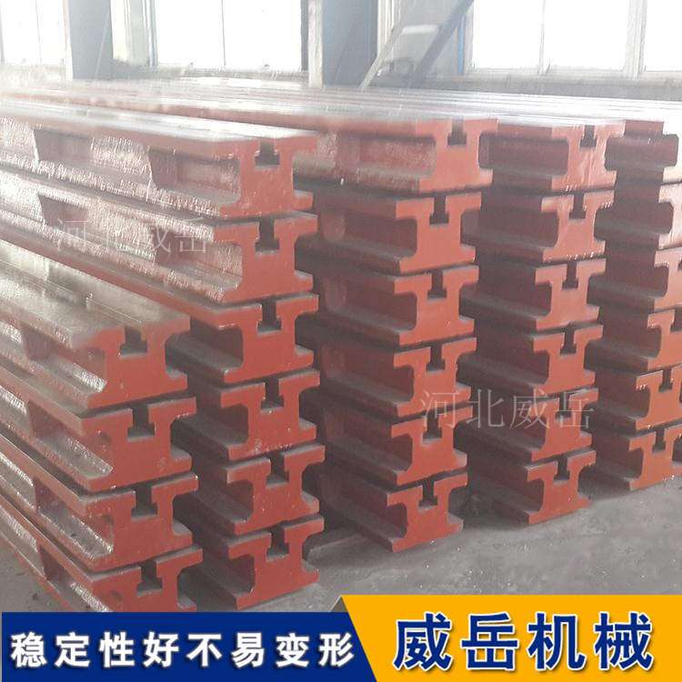 T型槽地轨也称地轨、地梁、地槽铁、基础槽铁、条形平台。 T型槽地轨用于大型设备的装配、试验、焊接和检验。根据设备的固定点来设计、拼接成铸梁平台,主要用于大型设备的装配、试验、焊接和检验。可代替铸铁基础平台使用。 T型槽地轨材质为优强度灰口铸铁HT200-250,工作面硬度为HB170-240,铸件经过两次人工退火600℃-700℃或自然时效2-3年,完全去除内应力,精度稳定,耐磨性能好。