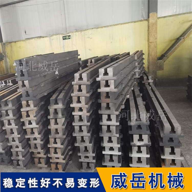 T型槽地轨材质为优强度灰口铸铁HT200-250,工作面硬度为HB170-240,铸件经过两次人工退火600℃-700℃或自然时效2-3年,完全去除内应力,精度稳定,耐磨性能好。
