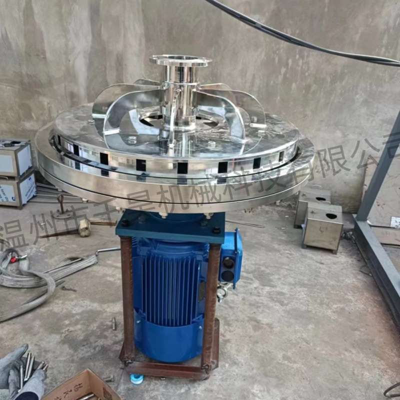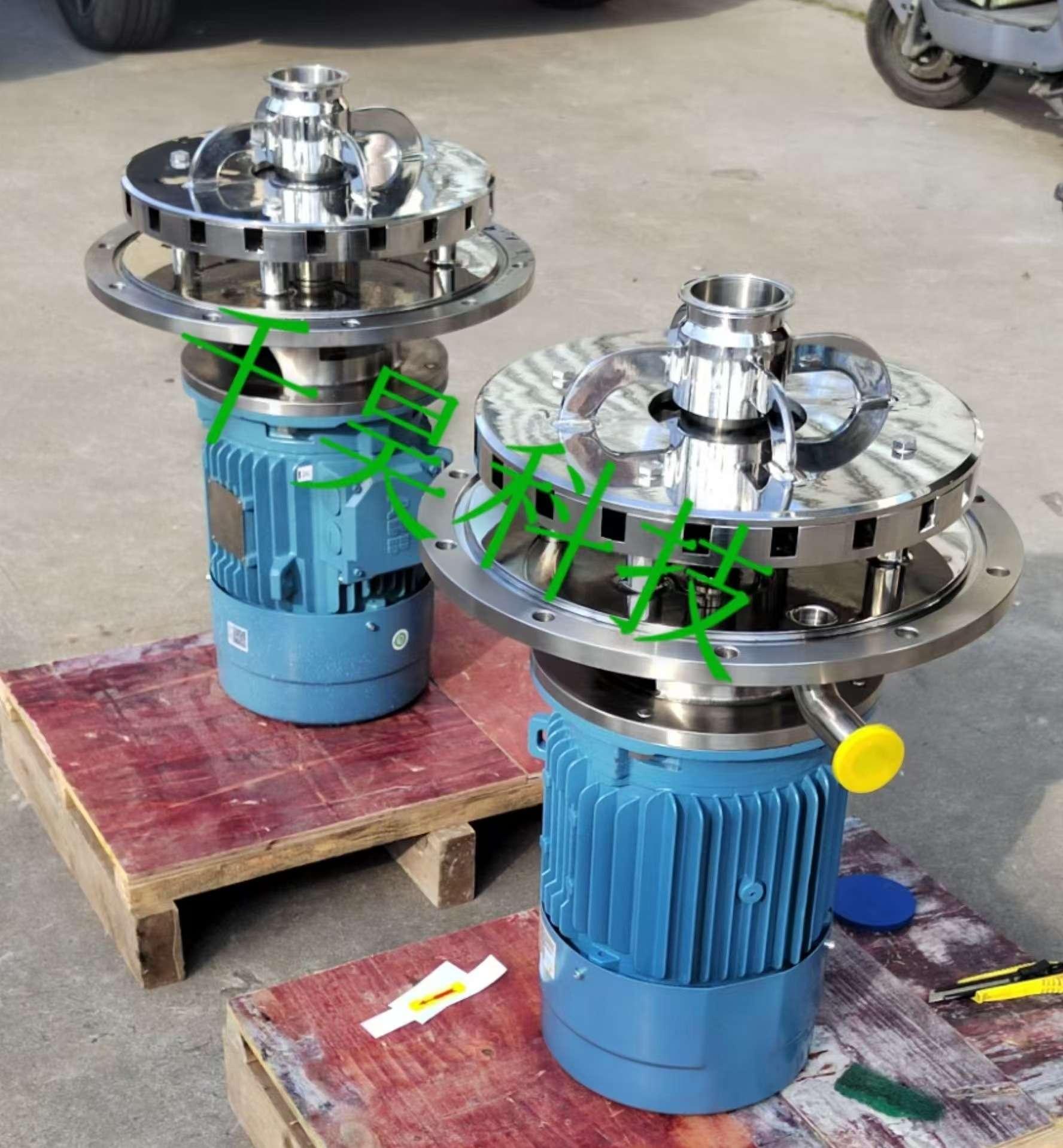 其工作过程:通过转子的高速运转后,产生的离心力,在中部形成真空,从上面吸入结净空气,与料液充分的混合,通过定子的导流装置,喷射进入液层当中,在液层中型形成强烈抗的湍流,达到全面供氧的过程,从而促进醋酸菌快速的生长繁殖,达到快速发酵的目地。