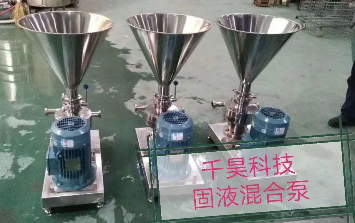 QHGY固液混合泵由主机与混合泵齿轮构成,通过一个双层壁管道将液态物与固态物分别抽吸进去,避免了在进入主体部分前凝结成块。液体高速进入混合机主机体,在转子与定子中心产生真空,以吸入固态物。固态物通过在斗口罐下方的阀门调节均匀吸入。设计简洁、功能多样。可以迅速、均匀地混合多种固态物,不与空气接触。充分混合,产品循环。在最短的时间内对物料进行分散、剪切、乳化处理,粒径分布范围变窄。由此可制得精细的长期稳定的产品。本设备设计先进、制作精良、生产效率高、经久耐用。既广泛适用连续自动生产线,也适用于不同的批次生产应用场合。